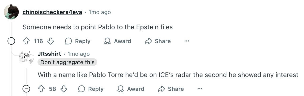 And Jeffrey Epstein does, organically, come up.