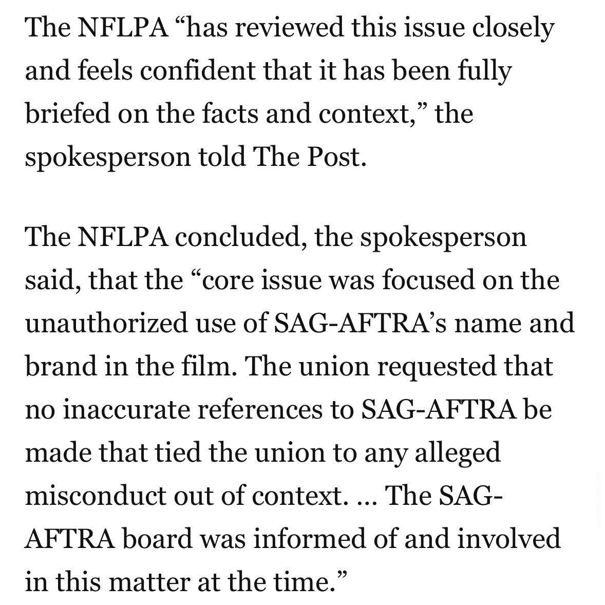 The NFLPA issued those denials in the august pages of The Washington Post: