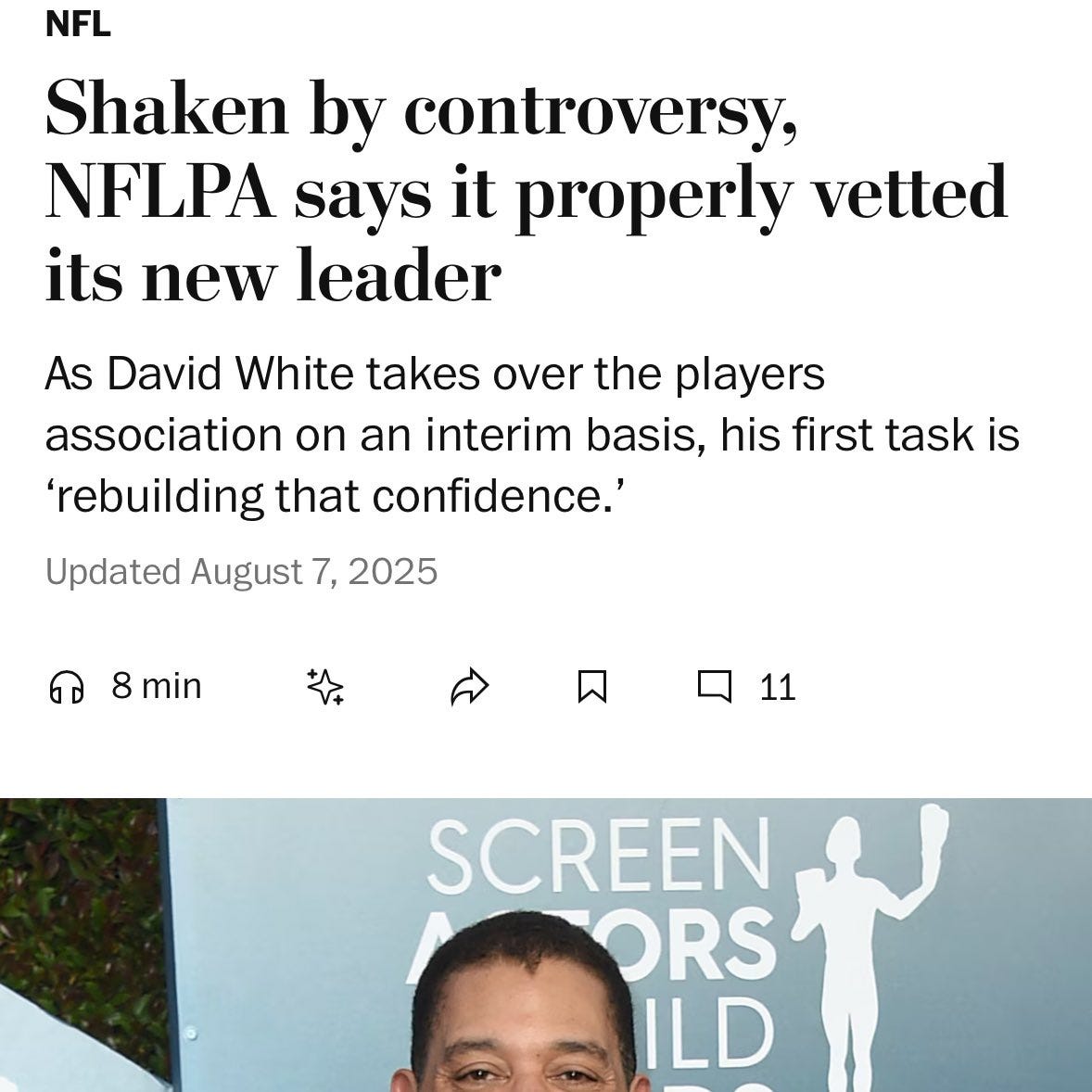 In case you missed it: earlier this month, the NFLPA did not merely elect its new interim executive director, David White, who was the former national executive director of SAG-AFTRA.