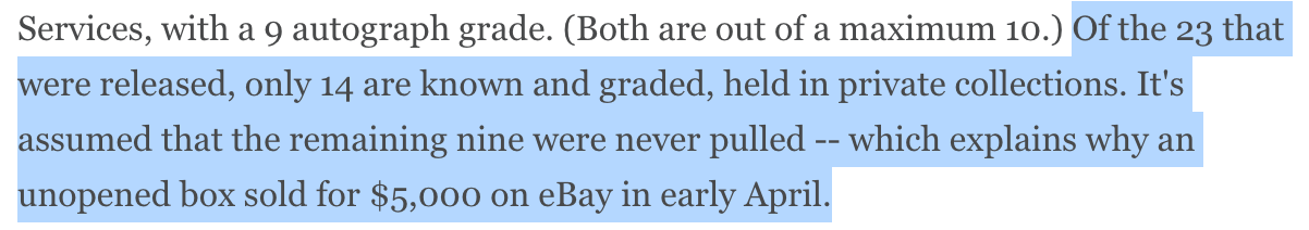 It was this section, pointed out by Christie’s, ESPN.com, and collectors all around the world: